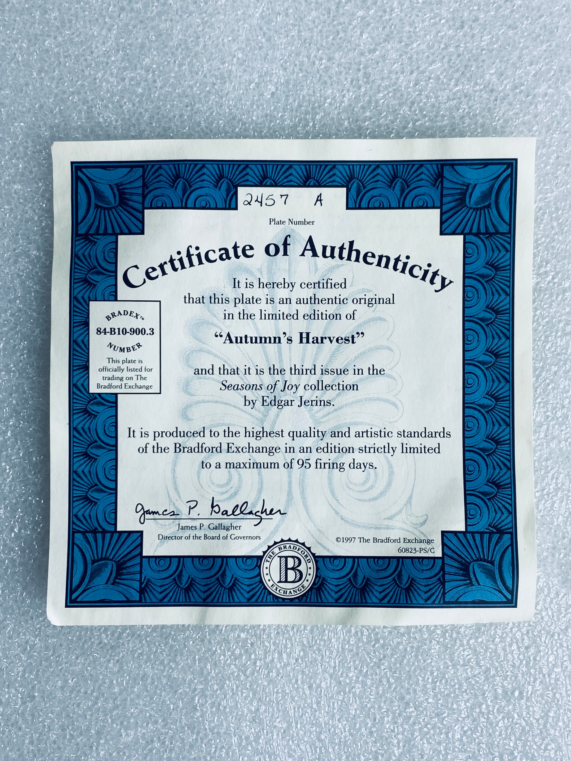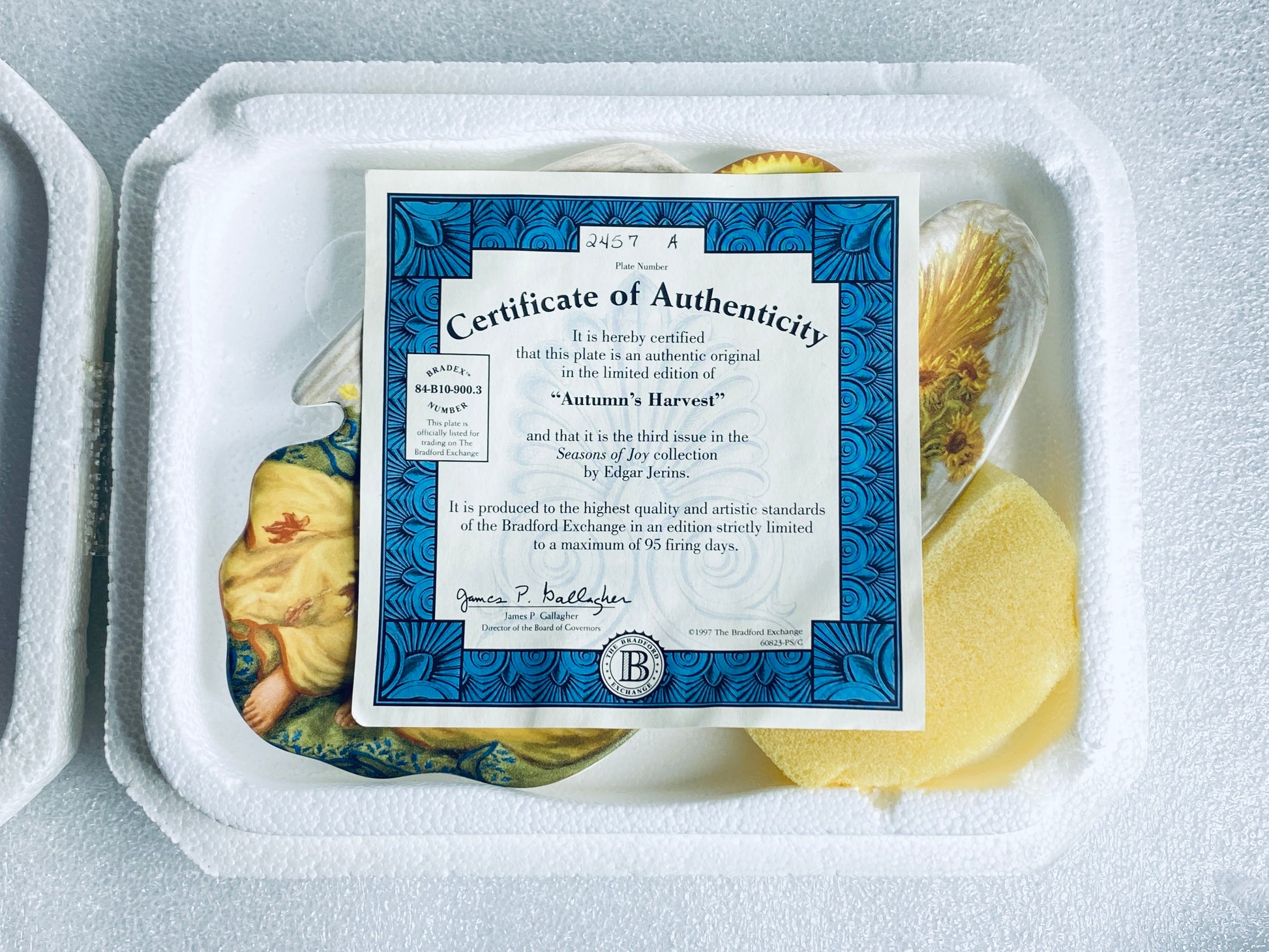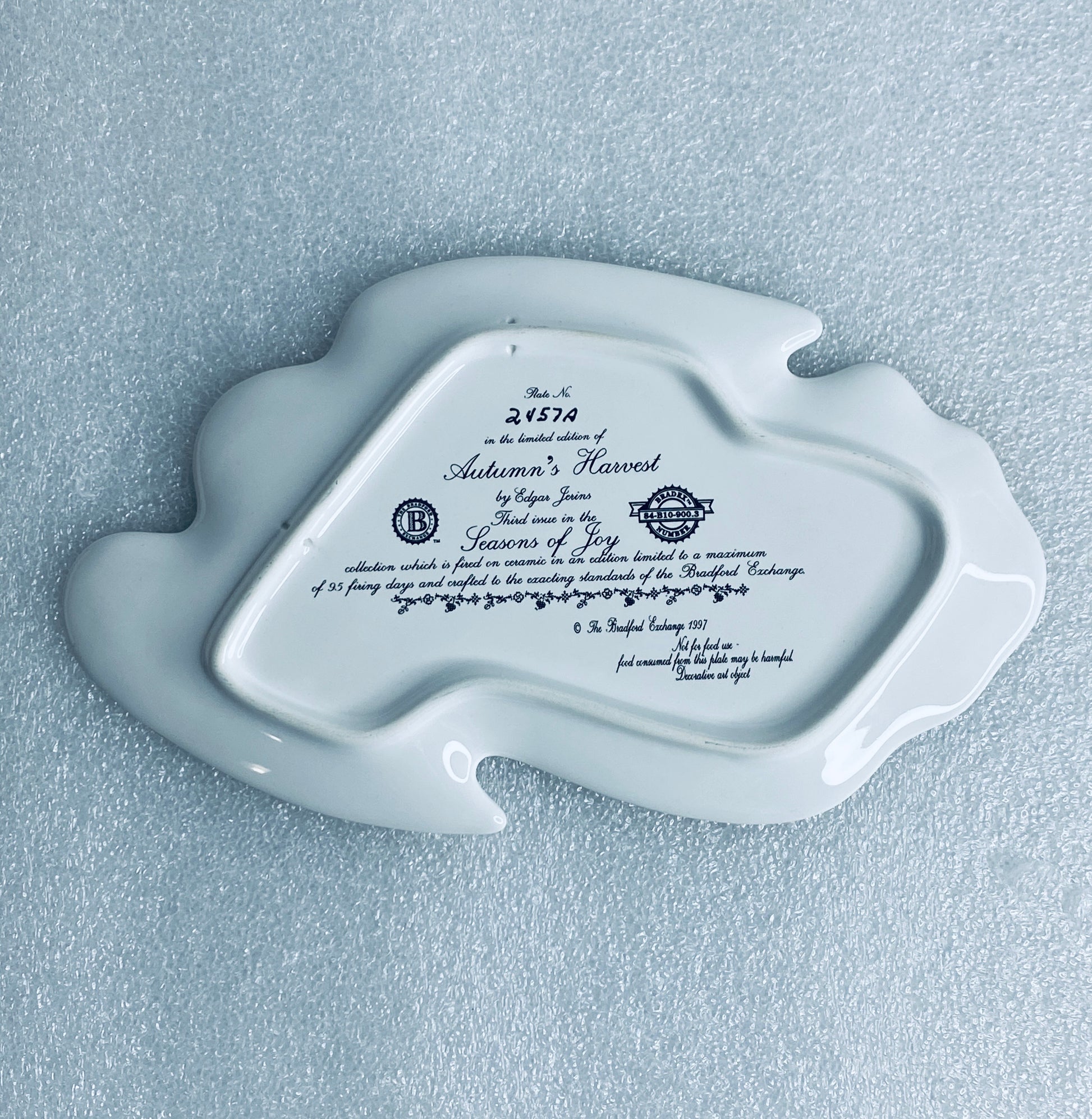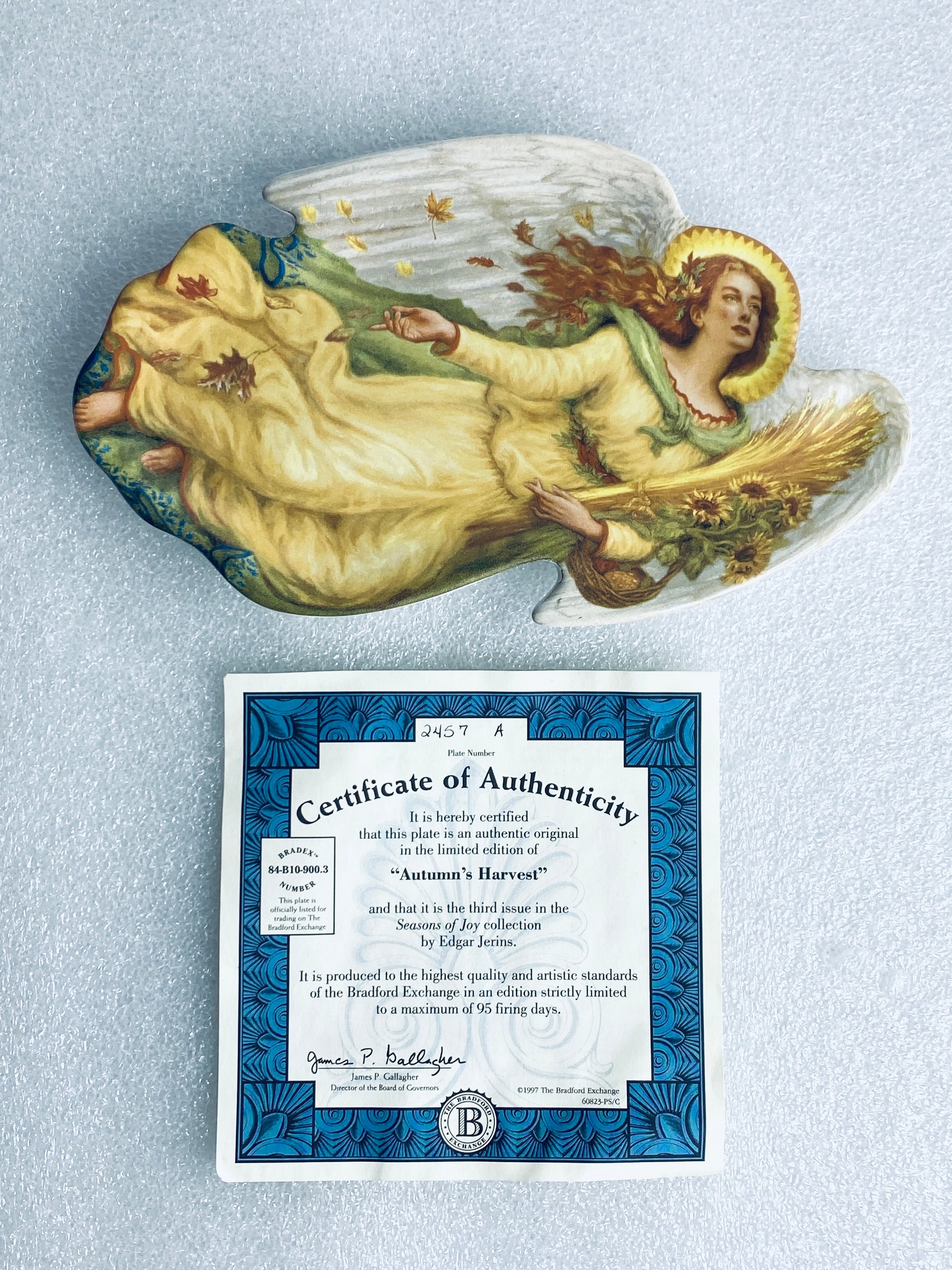 Extended Title: edgar Jerins Seasons Of Joy "Autumn's Harvest" Approx. 9" x 5 1/4" x 3/4" Angel Plate With COA