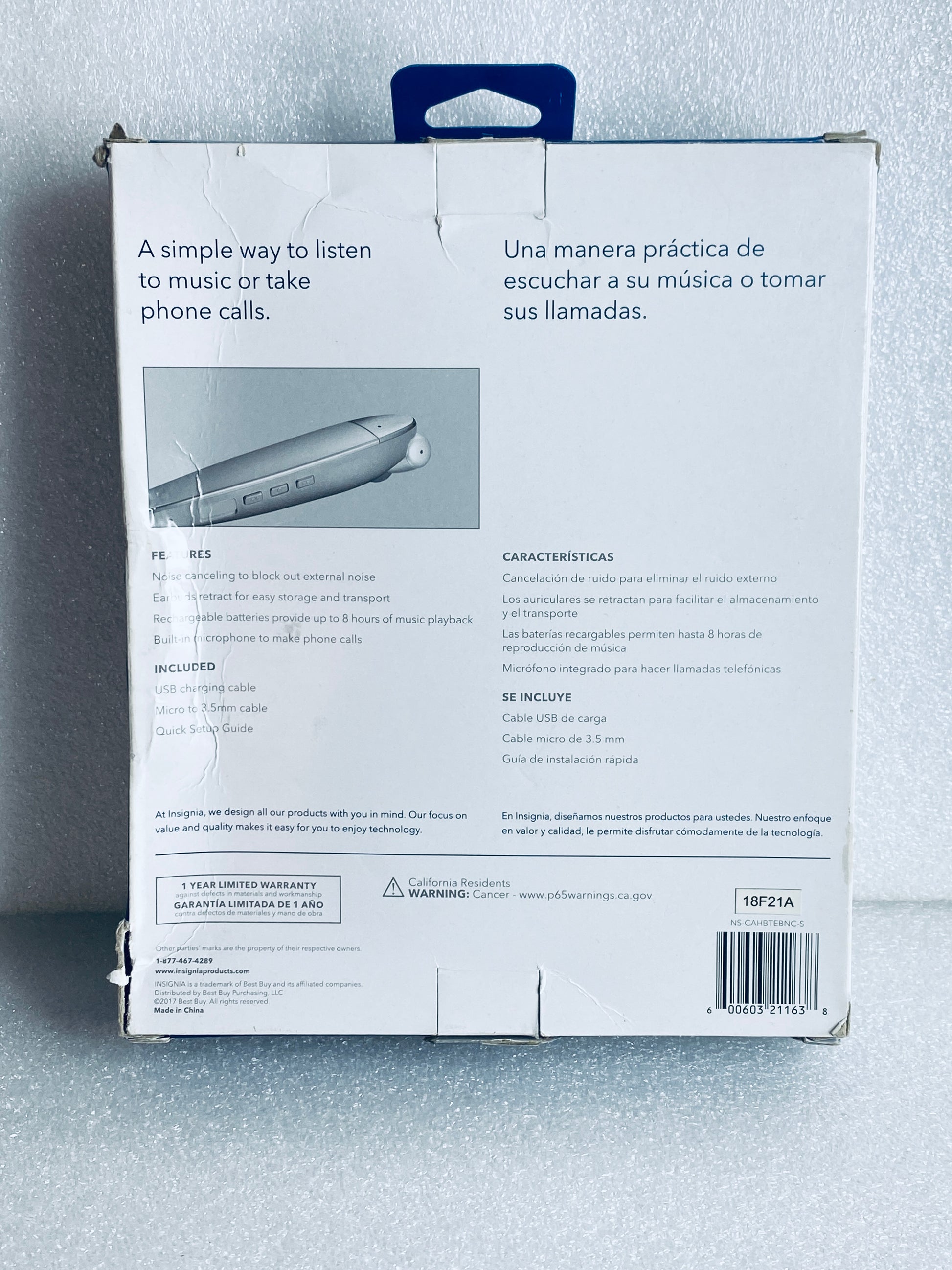 TITLE: Insignia Bluetooth Silver Noise-Canceling Wireless In-Ear Headphones/Headset With Retractable Earbuds & Built-In Microphone, NS-CAHBTEBNC-S