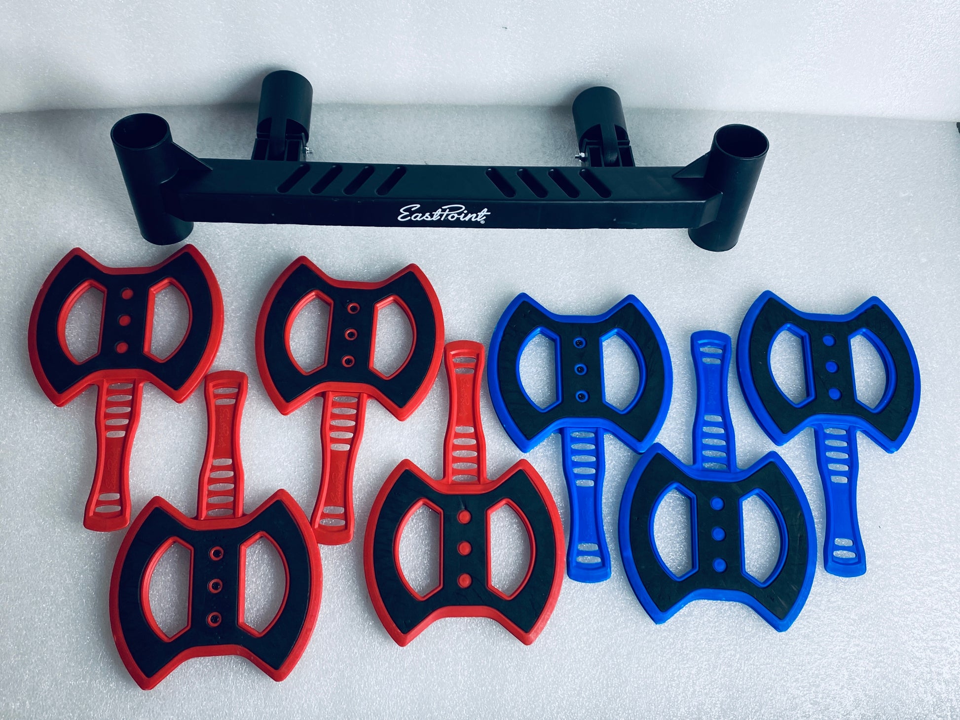 - 8 THROWING AXES: Fun for all ages and skillsets – constructed out of plastic and foam and are specifically designed to stick in the unique bristle target.