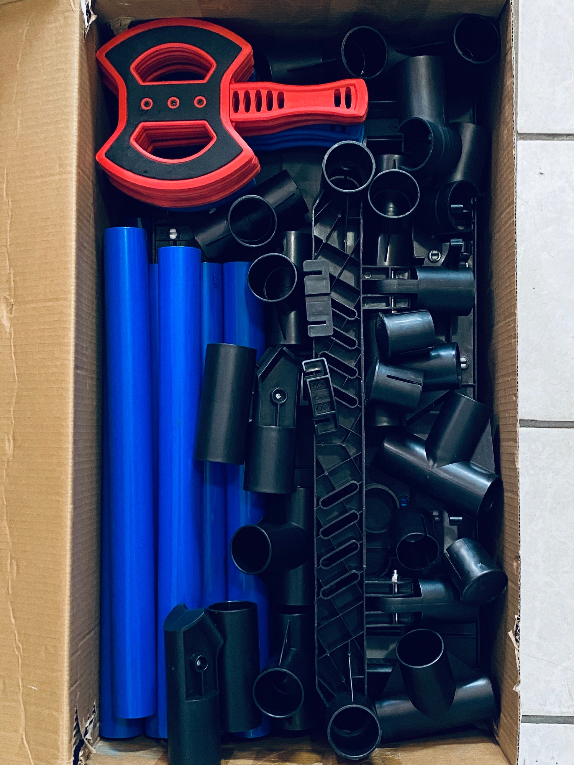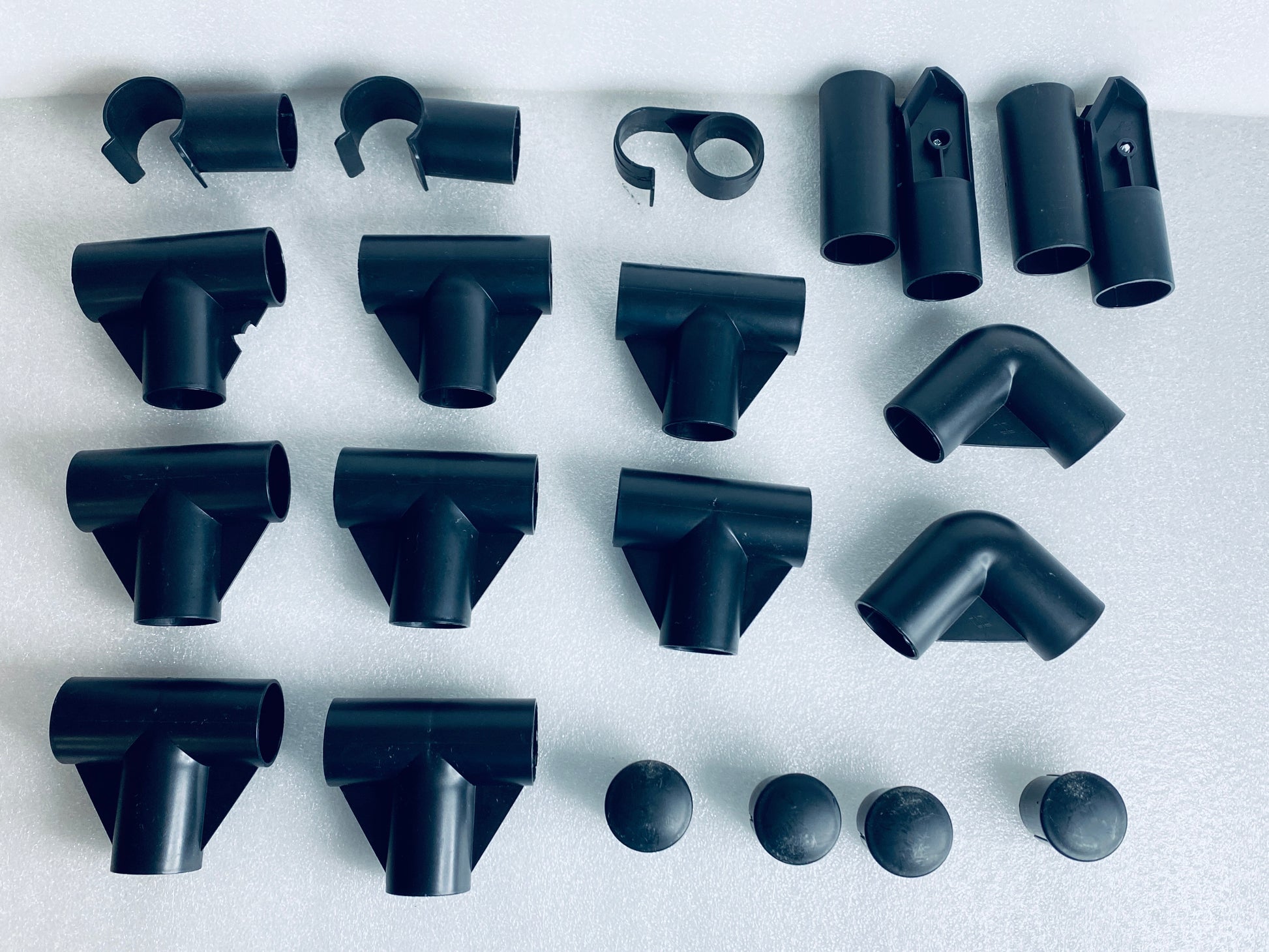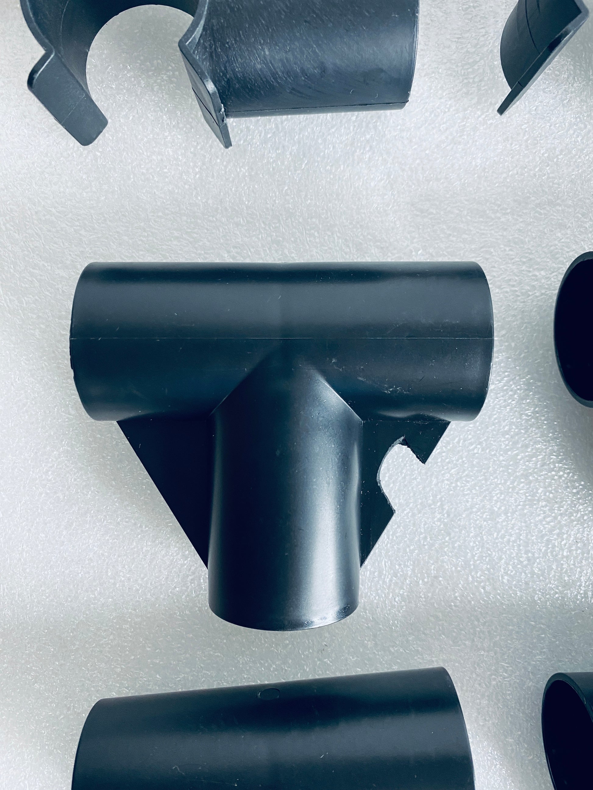 - One T connector has a chip off the plastic, as shown in picture #10. This part is still 100% useable.