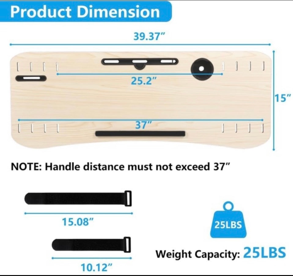 - Universal Treadmill Desk: Our treadmill desk attachment fits most treadmills that handlebar distances from 32 "- 37 ", and the maximum compatible handrails circumference is 7 ". The treadmill laptop holder provides a 39 " x 15 " ergonomic platform, allowing you to watch video, read a book and get your work done well on the treadmill.