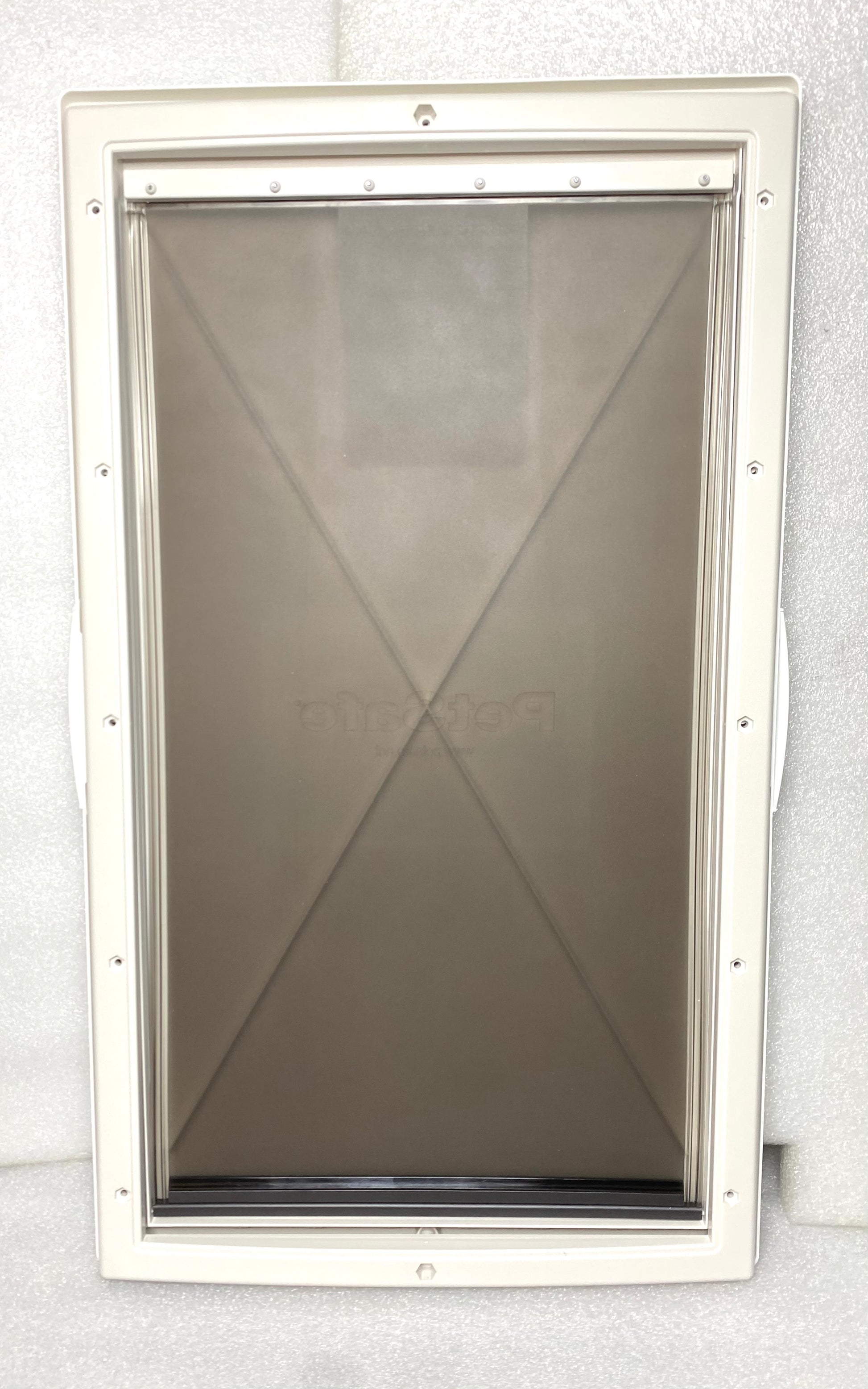 - The main package of dog door was opened to inspect it. The hardware package is still sealed. Unused ready to install.