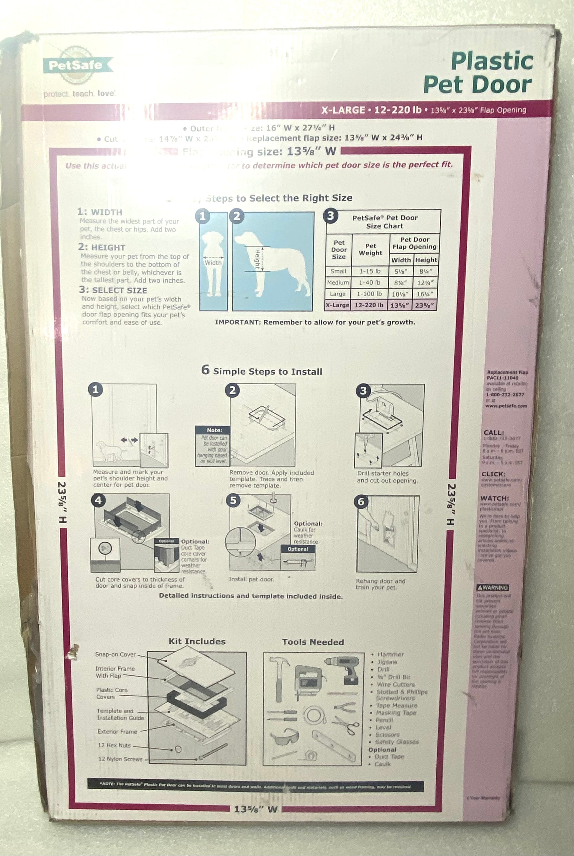 - Secure & Versatile Design: For peace of mind, choose when your pet comes and goes with the included lockable slide panel; extra large flap size has dimensions 13 3/4" x 23 3/4" for pets up to 220 lb