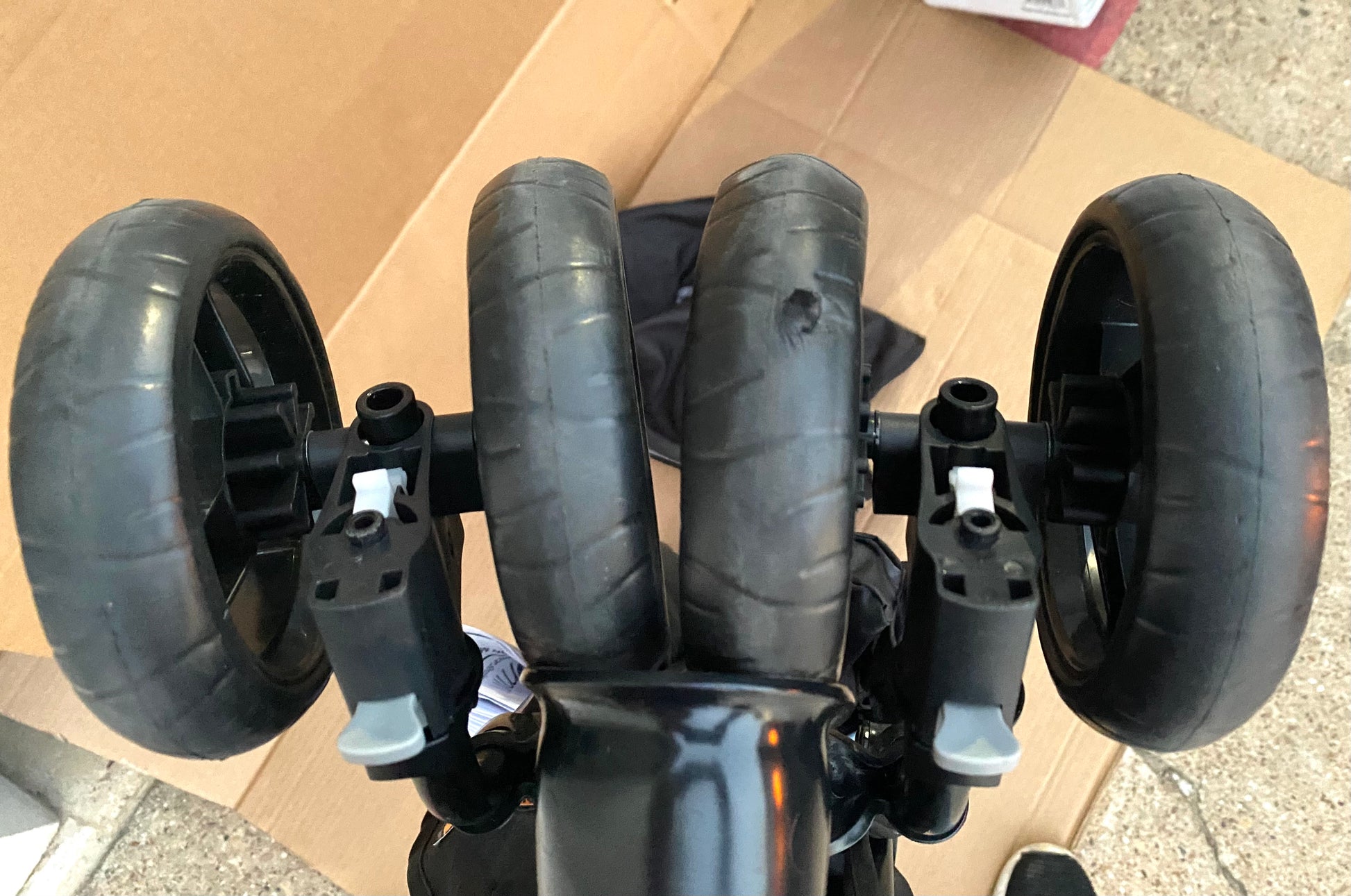 •The wheels show signs of use, also one of the wheels show part of the rubber is pulled up. (see last photo)